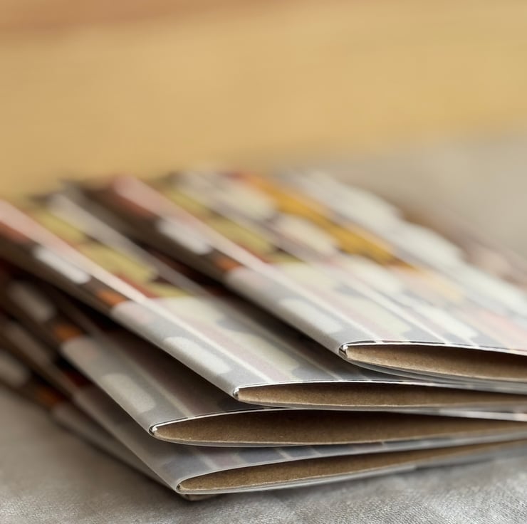 - Multipack: five (5) cards with rounded corners, the inside is blank, A6 card size 148mm x 105mm supplied with a brown (kraft) recycled envelopes