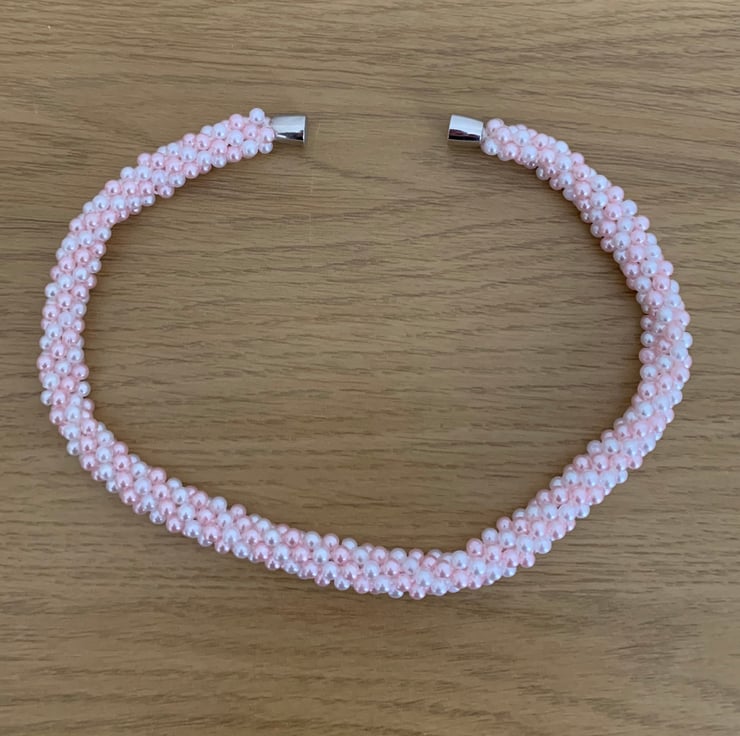 This lovely handmade choker has been made using 4mm glass pearl beads using the ancient traditional technique of Kumihimo.