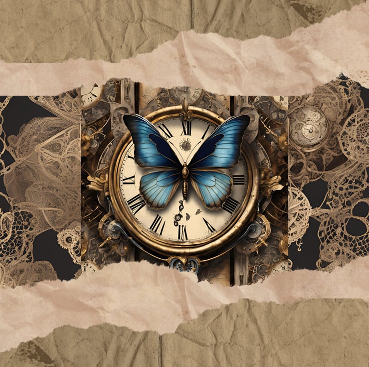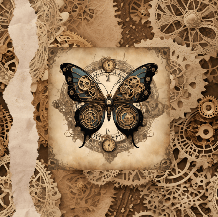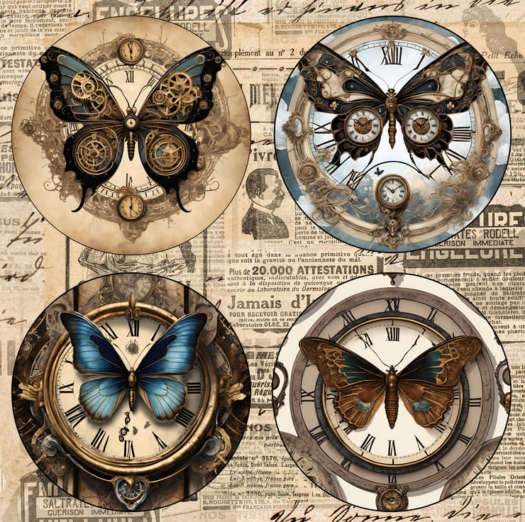 This listing if for a digital file of beautiful scrapbooking papers for you to download and print at home as many times as you like in a stunning vintage theme of steampunk butterflies.