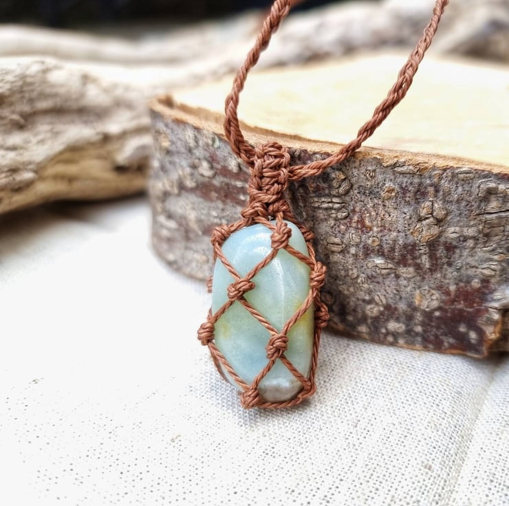 Amazonite necklace, tumble stone jewelry secured in a Micro Macrame waxed cord chain.