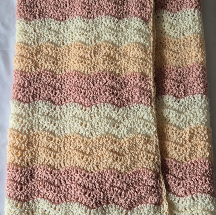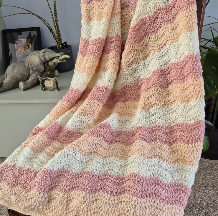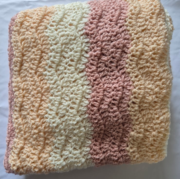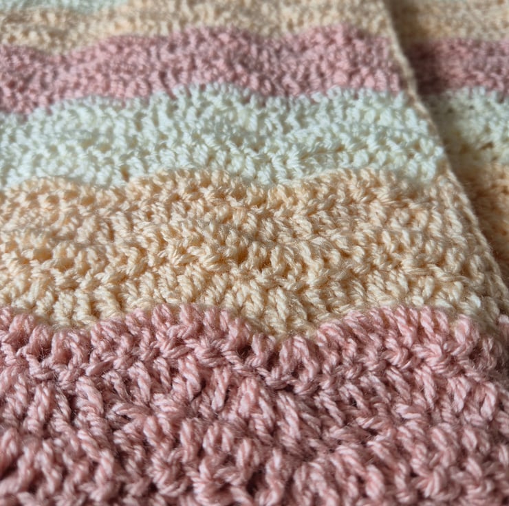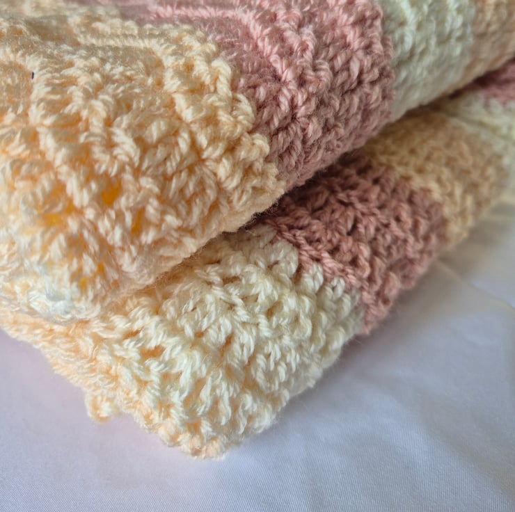 Made with super soft wool in contrasting colours of buttermilk, blush and ivory. I used a aupersoft acrylic wool.