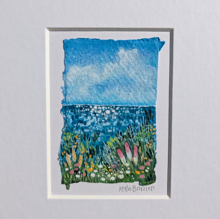 'The sun sparkled on the waves' is a tiny, mixed media miniature float mounted into a custom A5 mount.