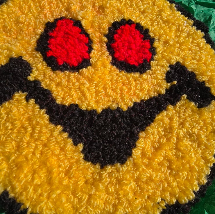 Yellow Smiley Face and Red Eyes Punch Needle Desk Rug Coaster Mouse Mat