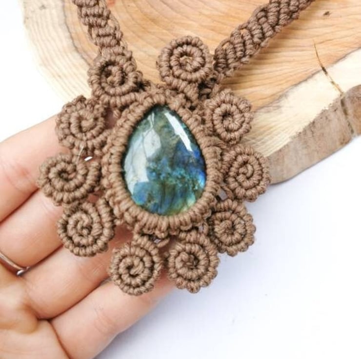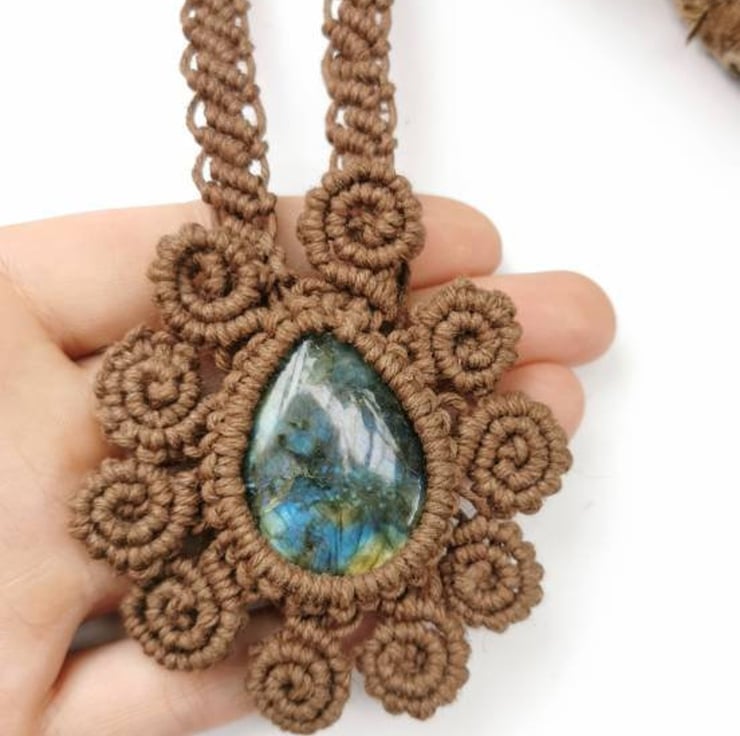 Our macrame pendant necklace had made with 100% natural hand dyed hemp cord. Hemp cord is a strong, durable cord that is naturally hypoallergenic.