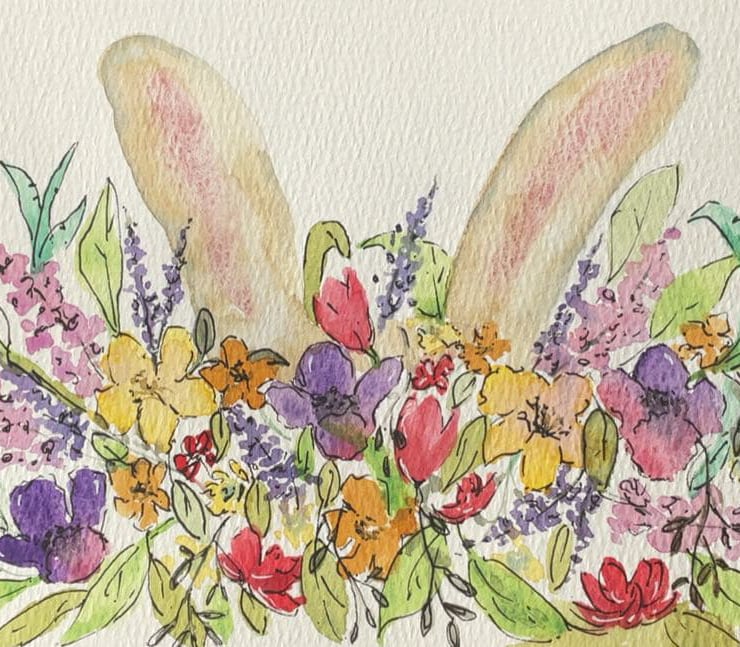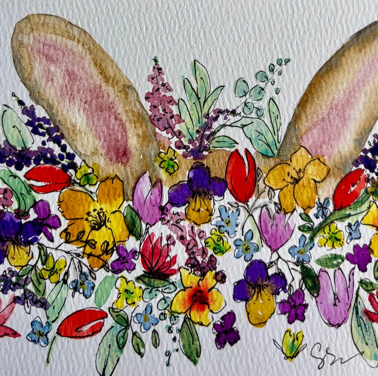 Fabulously Cute original watercolour and ink on 7” x 5” paper. Perfect Easter addition!