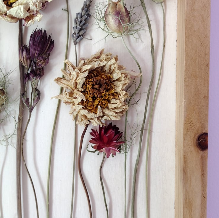 A unique piece of art which brings a snapshot of native and ornamental flowers into your home. This decor will take you straight to relaxing summer days in the garden, and the calming influence of nature, whatever the time of year.