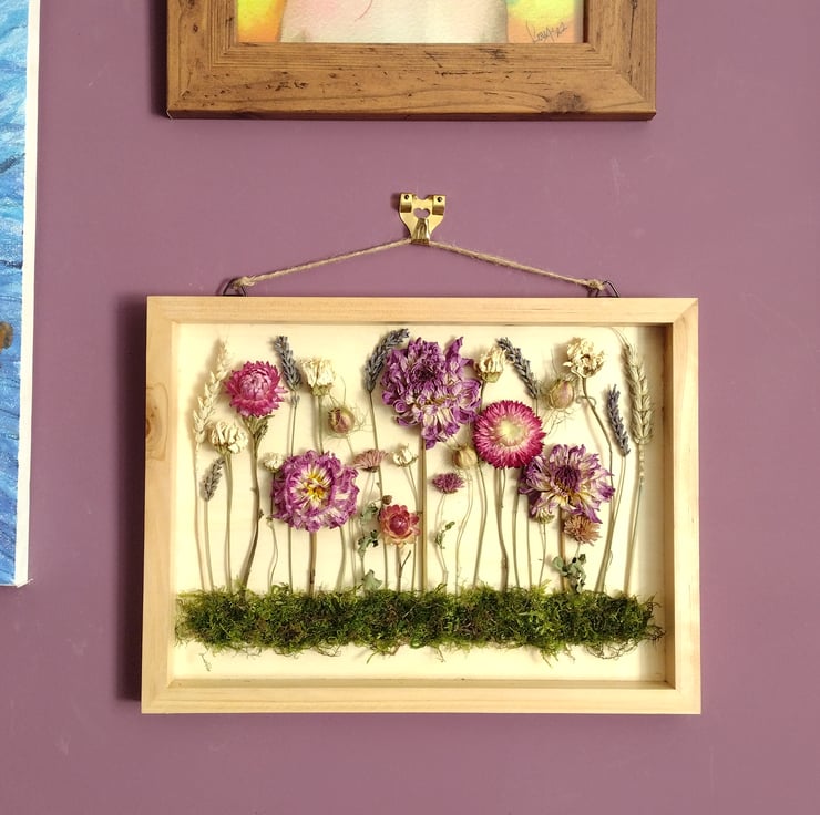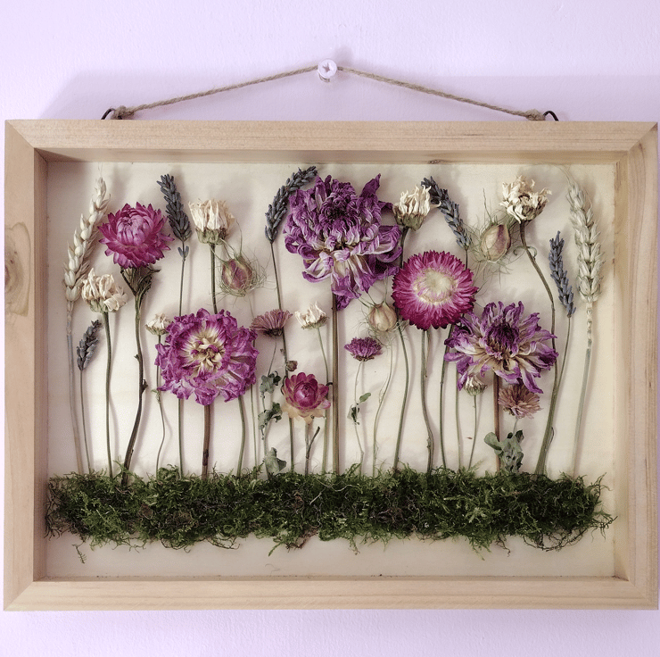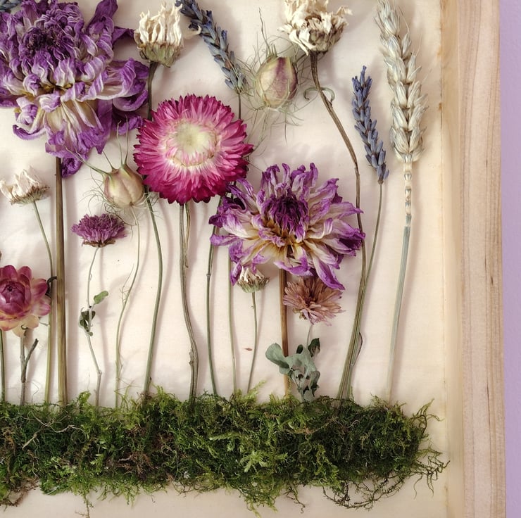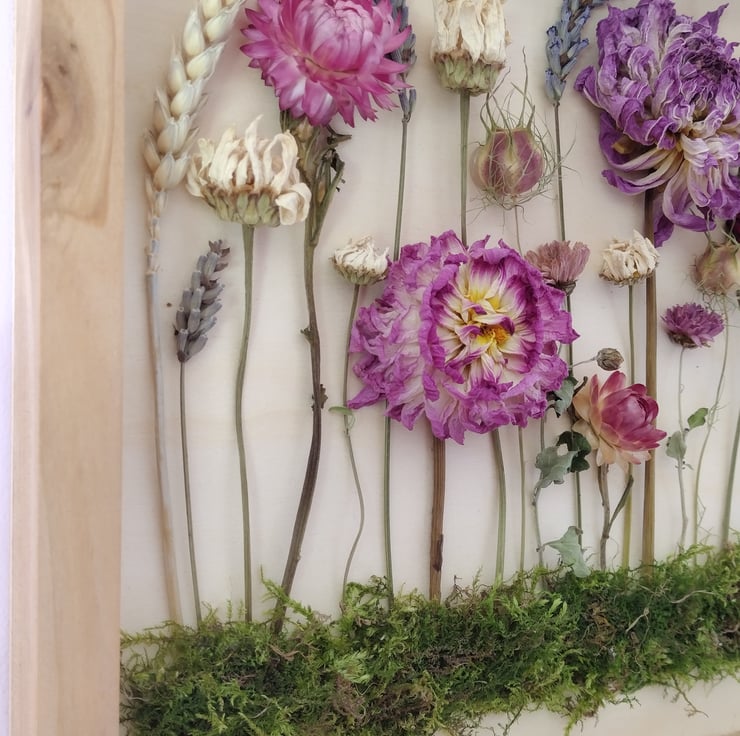 The flowers were organically grown in peat free compost, picked and dried right here in the Fens from our wildlife friendly, half acre garden. The moss is also from our garden. Perfect for the eco conscious among you.
