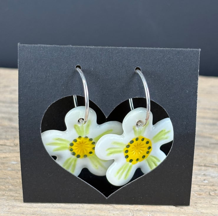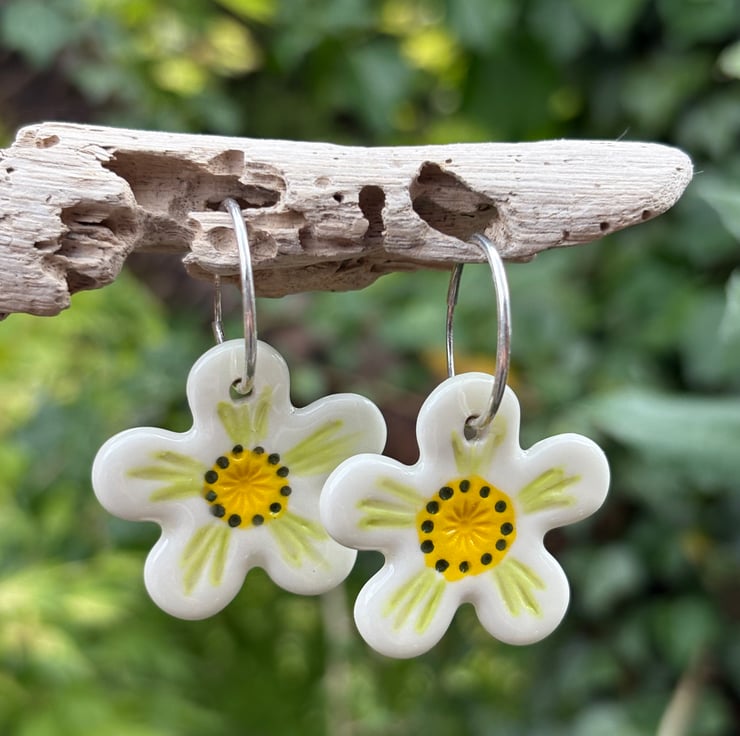 Brighten up your jewellery collection with these stunning sterling silver endless hoops adorned with handmade glazed porcelain flowers!