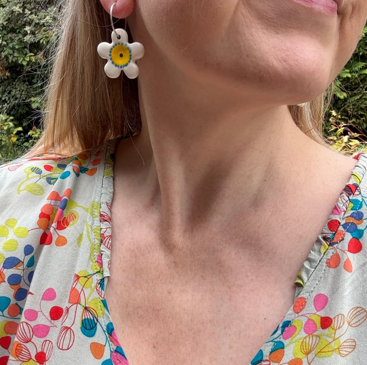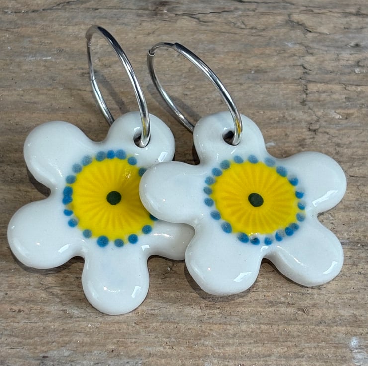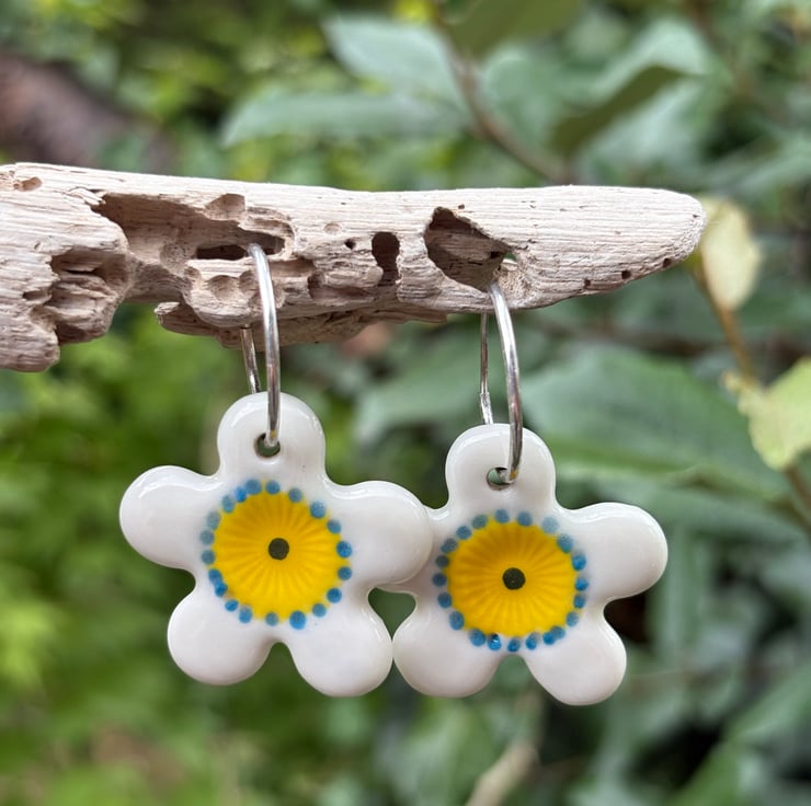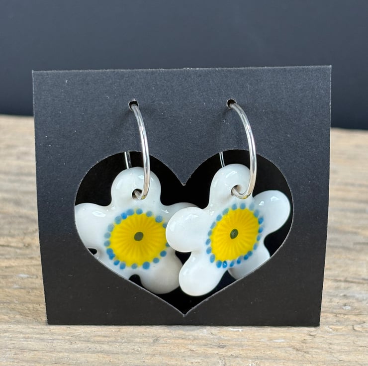 Brighten up your jewellery collection with these stunning sterling silver endless hoops adorned with handmade glazed porcelain flowers!
