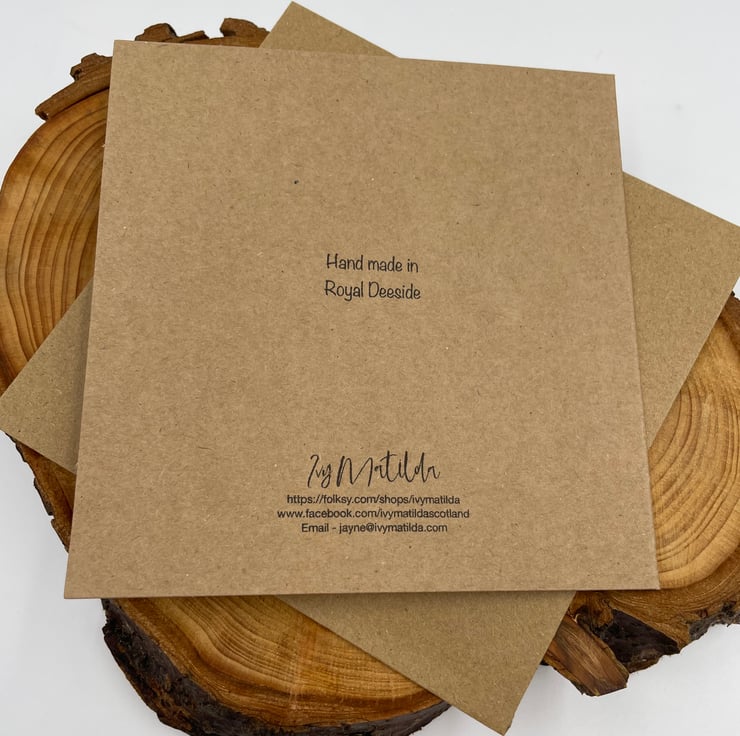 Recycled card measures 15 x 15 cm and comes with matching envelope.