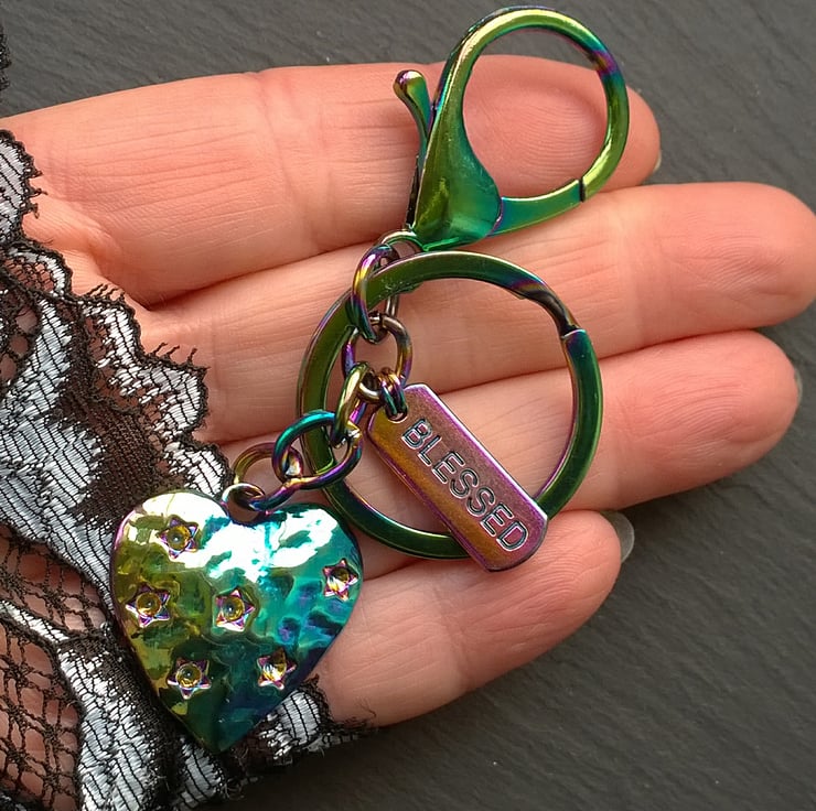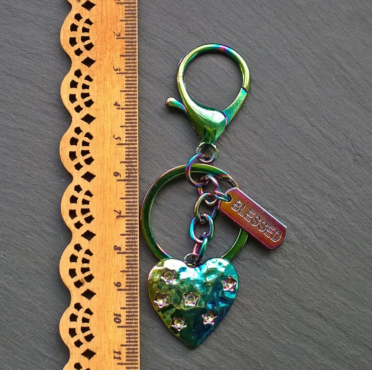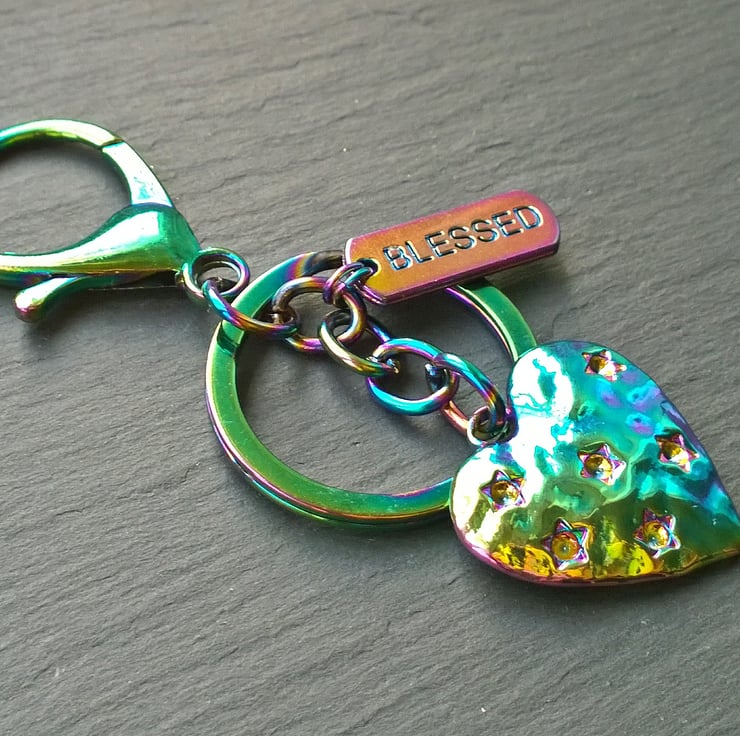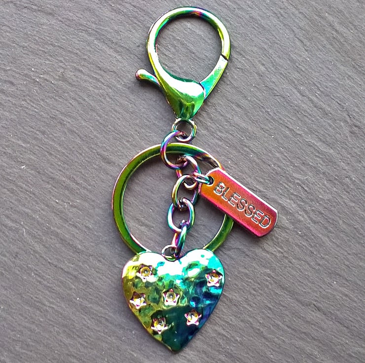 Love Heart Blessed Rainbow Plated Keyring (15)
