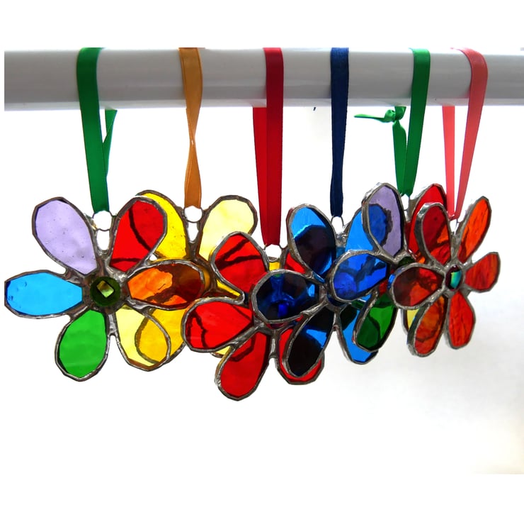 I've designed these flowers as mini suncatchers which you can hang from a plant or anywhere really as well as in the window.