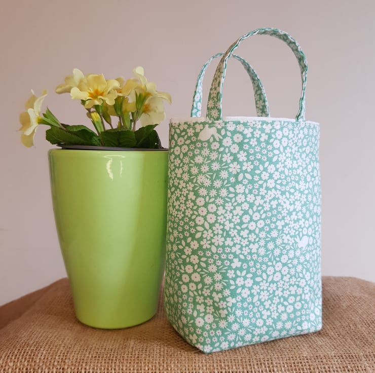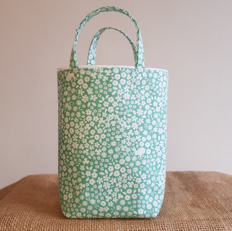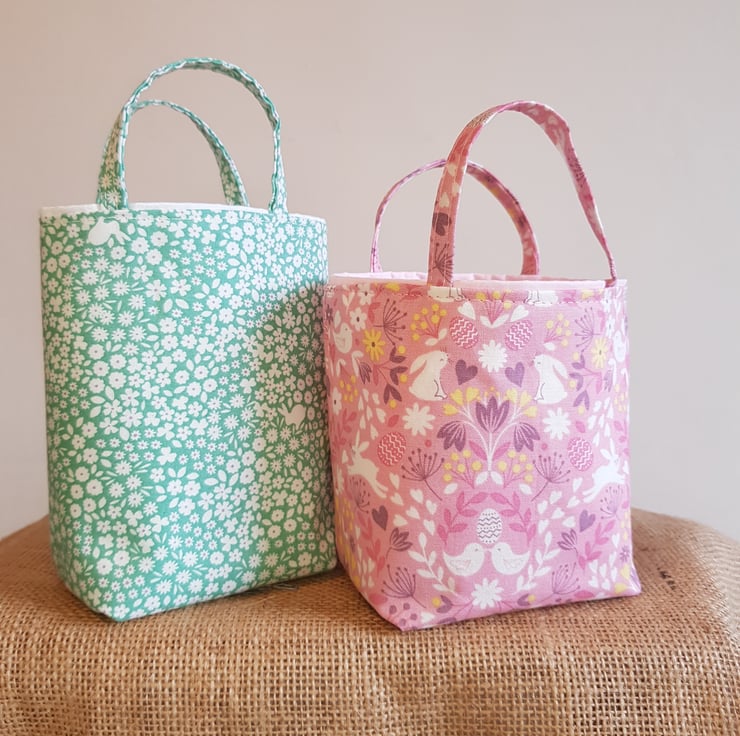 This lovely cotton fabric makes a great little gift bag. Just the right size for a pack of mini eggs. Use for an Easter egg hunt and keep for another year.