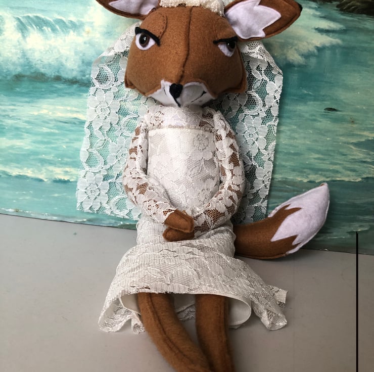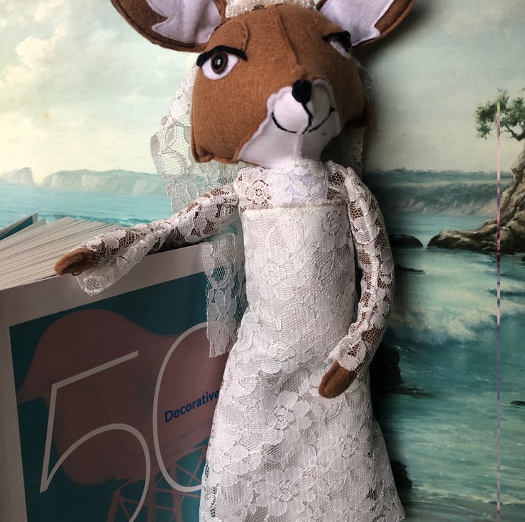 Inspired by a pattern from Craft seller magazine. The original used needle felting technique and had shorter limbs. I played around with various ways to create something similar and Fox Bride was one of the outcomes!