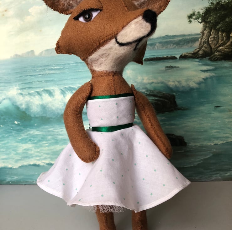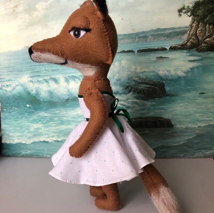 Details (eyelashes, nose , mouth, ears and tail end) on the fox have been needle felted and the eyes are safety toy eyes.