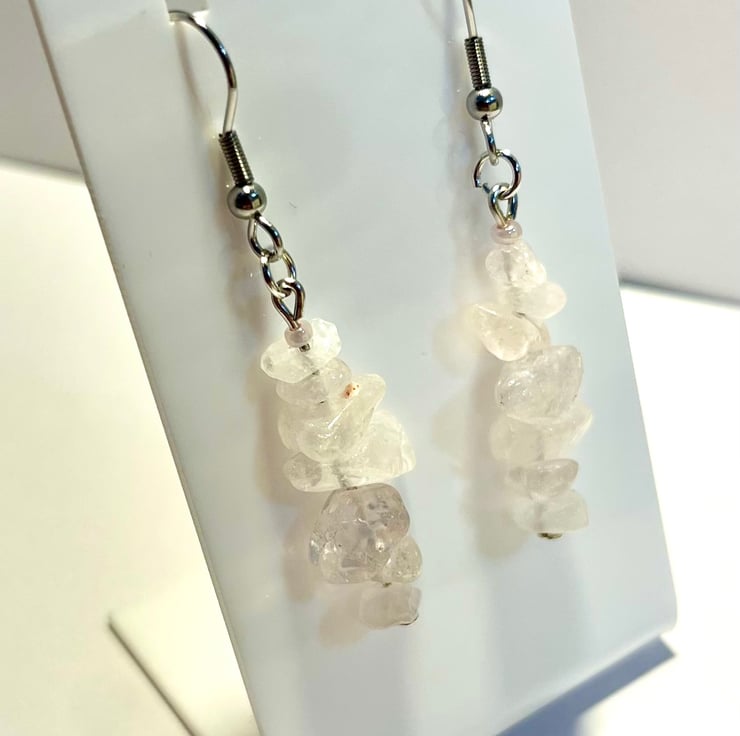 Gemstone chip earrings are an ever popular design in my shop and Rose Quartz being the stone of love and relationships, who can resist. So long as people keep on buying this lovely design, then I will keep on making them.
