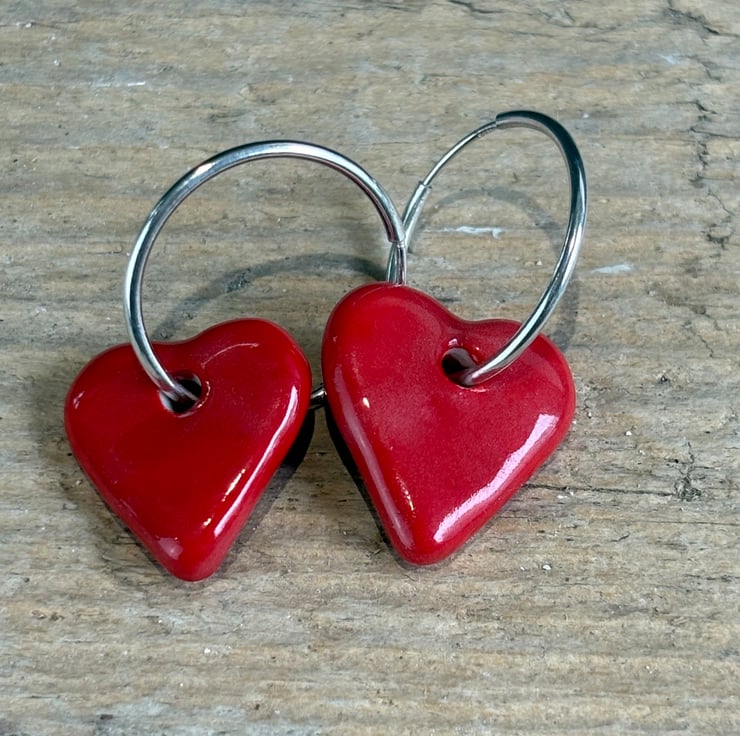 Brighten up your jewellery collection with these stunning sterling silver endless hoops adorned with handmade glazed porcelain hearts!