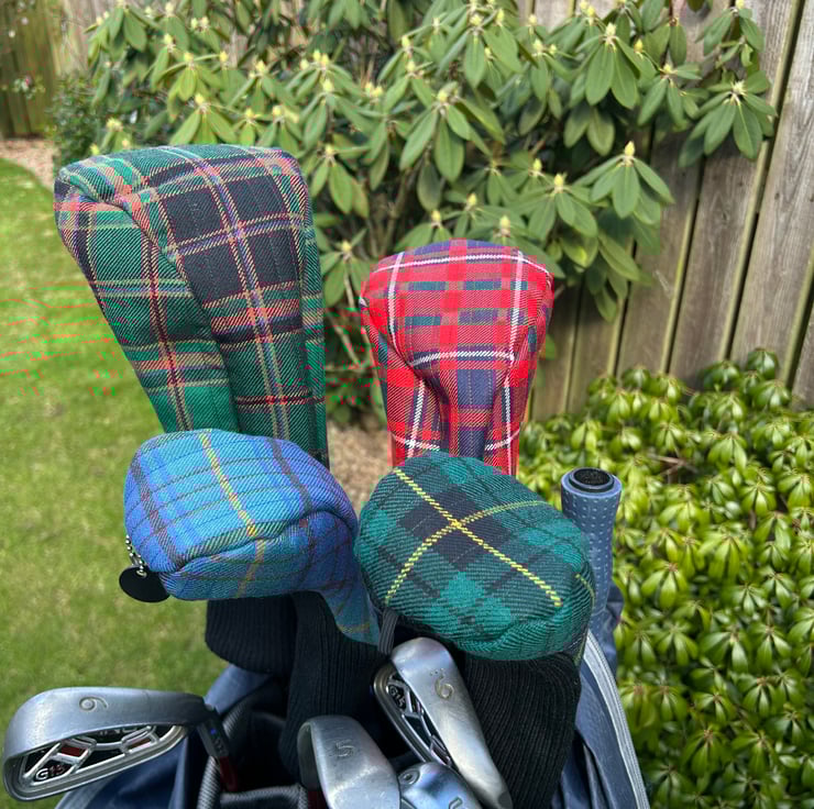 These covers come in three sizes. Driver, Fairway Wood and Hybrid (or small wood). I have a selection of other tartans available. Please ask.