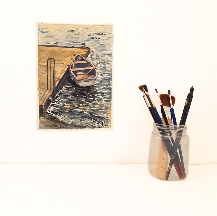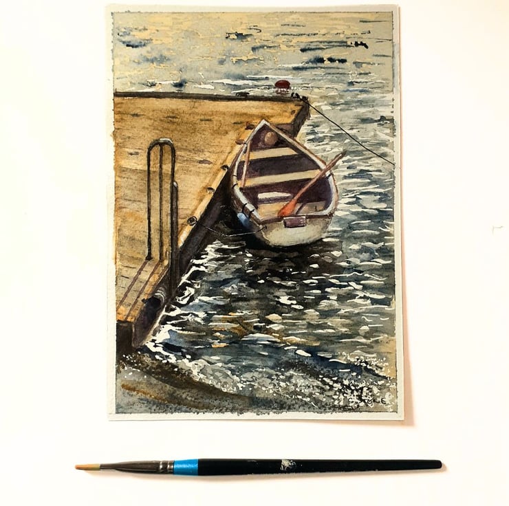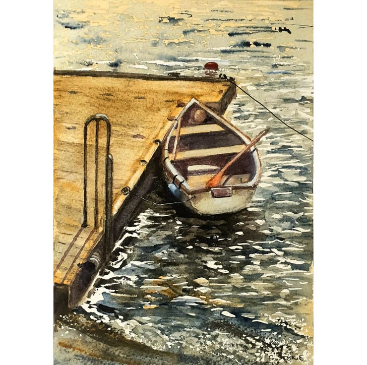 Inspired by a view of a small boat moored on a sparling Siblyback Lake on Bodmin Moor in Cornwall.