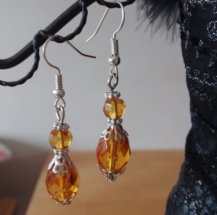 Handmade Amber Glass Beads with Silver Plated Attachments
