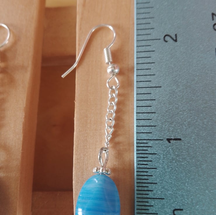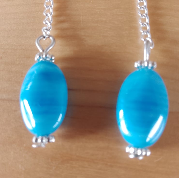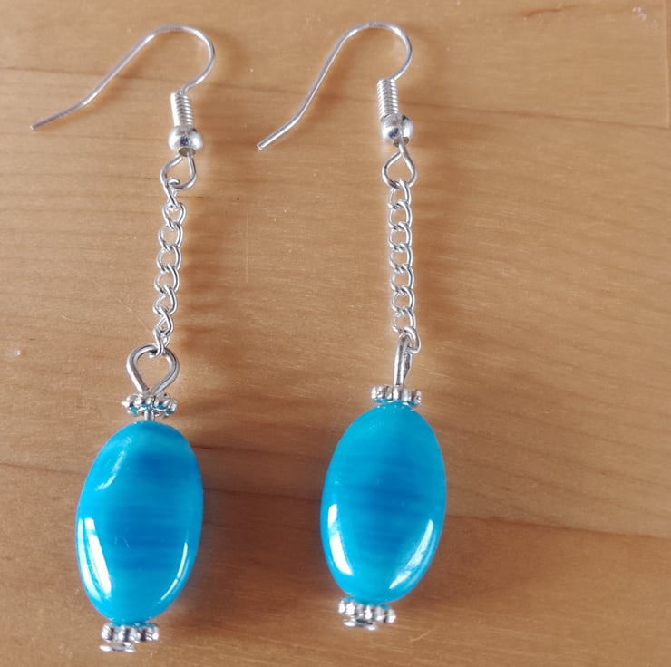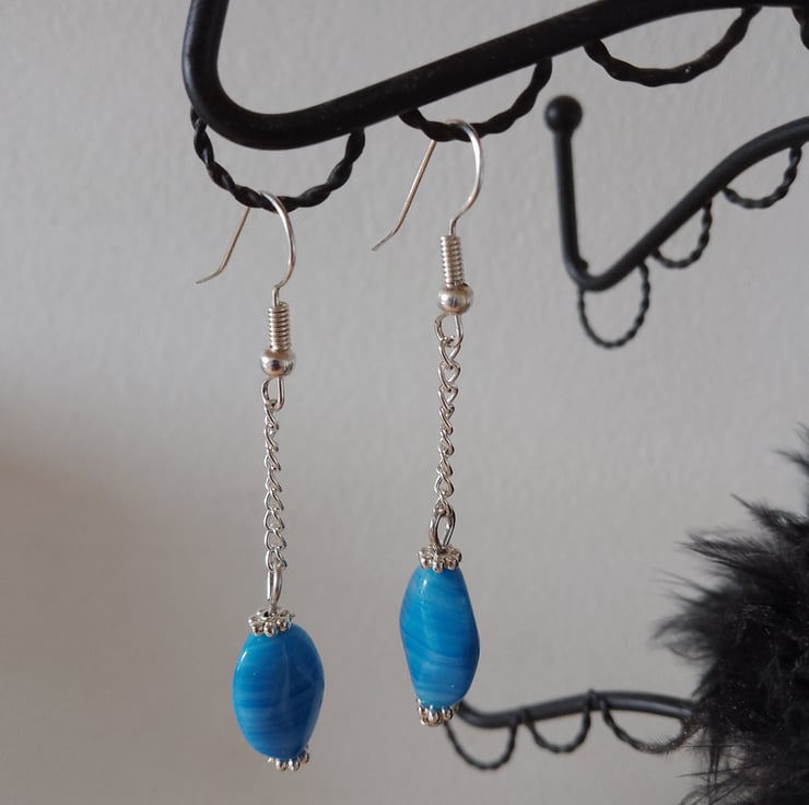 Handmade Blue Czech Glass on Silver Plated Chain & Silver Plated Earring Hooks