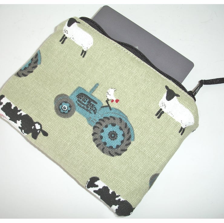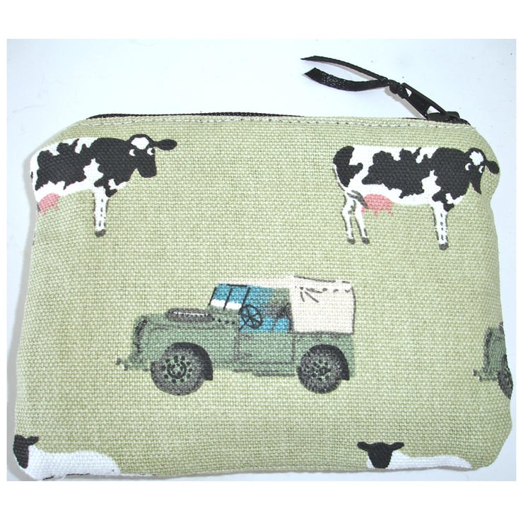 This little zipped coin purse features is made from Sophie Allport "On The Farm" Fabric and features a Tractor, Land Rover, Sheep and Cows.