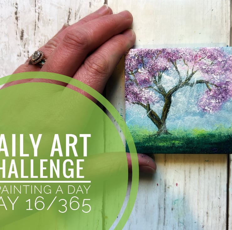 Today's painting is inspired by a beautiful old cherry blossom tree with a twisted, weathered trunk, standing strong as it begins to bloom. Its delicate pink flowers contrast against a stormy-looking sky, where heavy grey clouds linger—but just as in life, the sun still finds a way to shine through, with hints of blue peeking through the gloom.