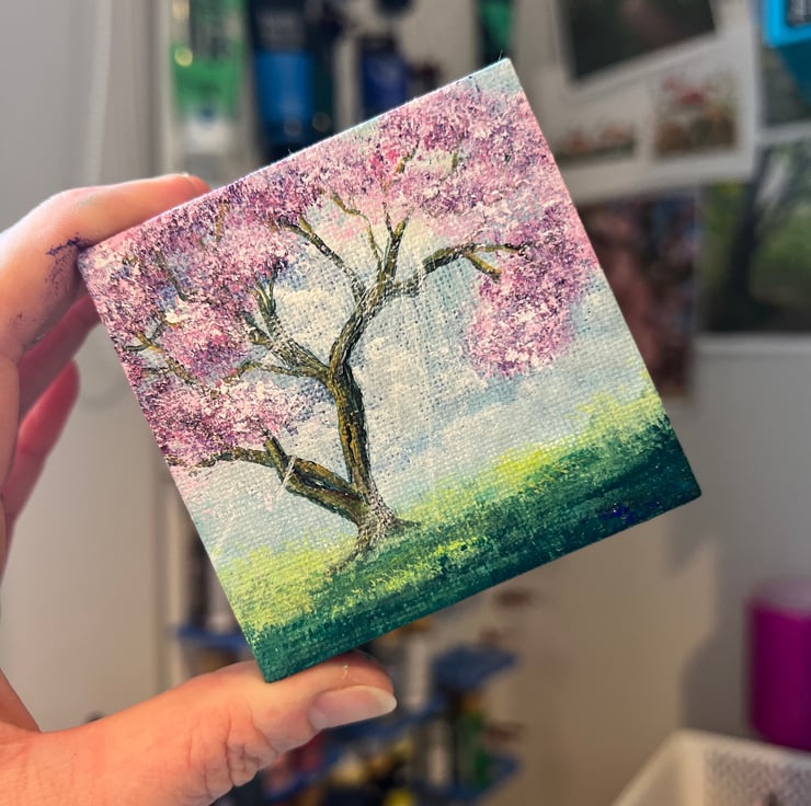 This piece feels like a reminder that beauty can thrive even in uncertain skies. A little moment of hope and resilience, captured on my mini 7cm x 7cm canvas.