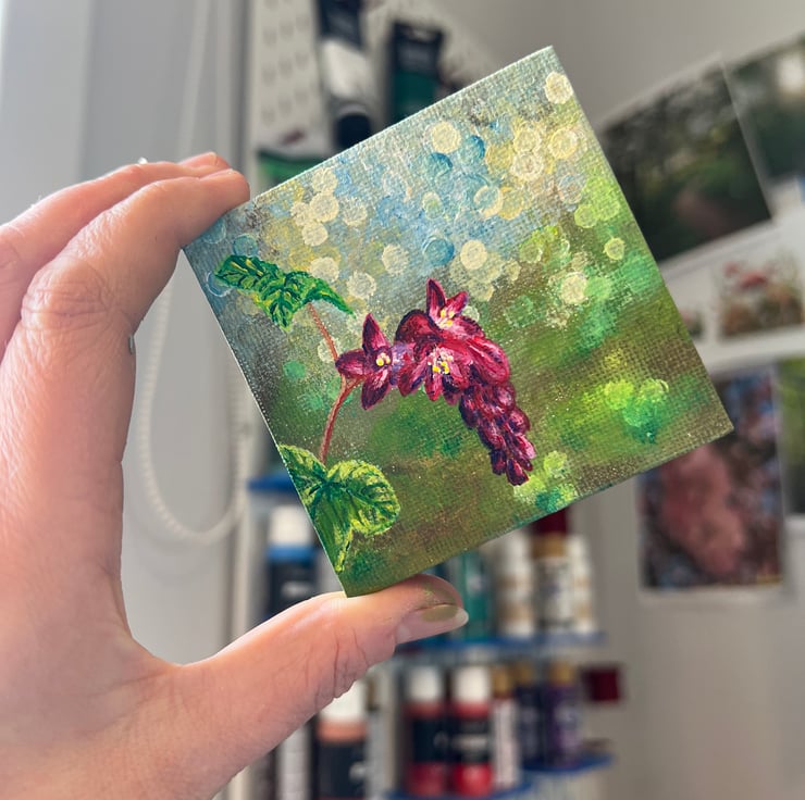 Today’s painting was another practice session with the Bokeh technique—a painting and photography style that creates a soft, blurred background with lots of little circles, while keeping the foreground crisp and sharp.
