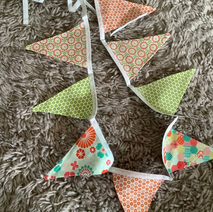 4ft length of vintage style bunting 8 double sided flags each measuring approx 4.5”x 6” ideal for bedroom or garden decoration