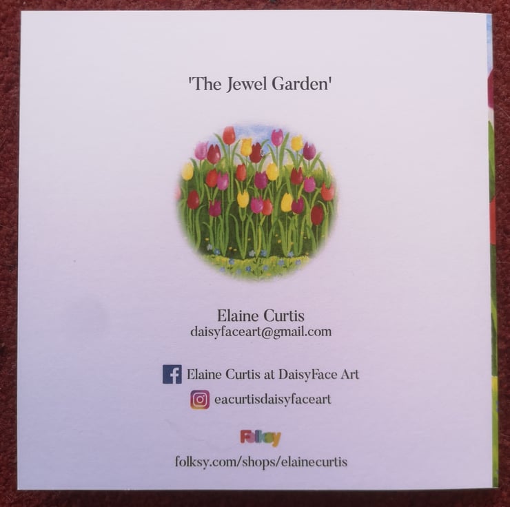 The card measures approximately 15x15cm and is left blank for your own message. It is printed beautifully on quality card. Friends and family will love to receive this bright and cheerful card.