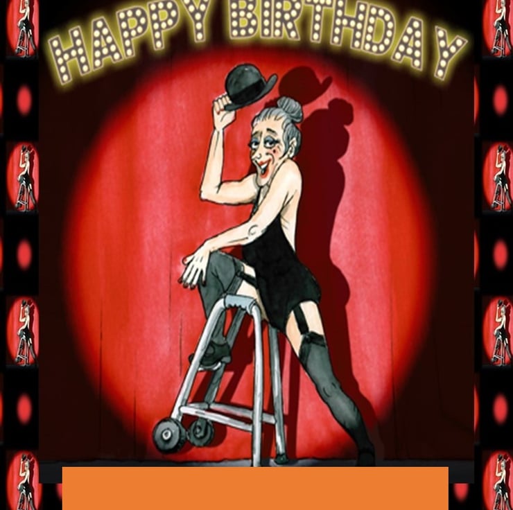 Step into the spotlight with this unforgettable Cabaret-inspired birthday card! Featuring a playful and theatrical illustration, this cheeky design puts a hilarious spin on the iconic musical. With its bold "Happy Birthday" marquee lights and a show-stopping character striking a pose, it’s perfect for anyone who loves a bit of drama, humorous vintage-style entertainment.