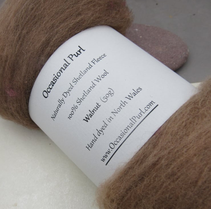 100% British Shetland wool, carefully dyed with locally gathered walnuts to give a range of rich browns.