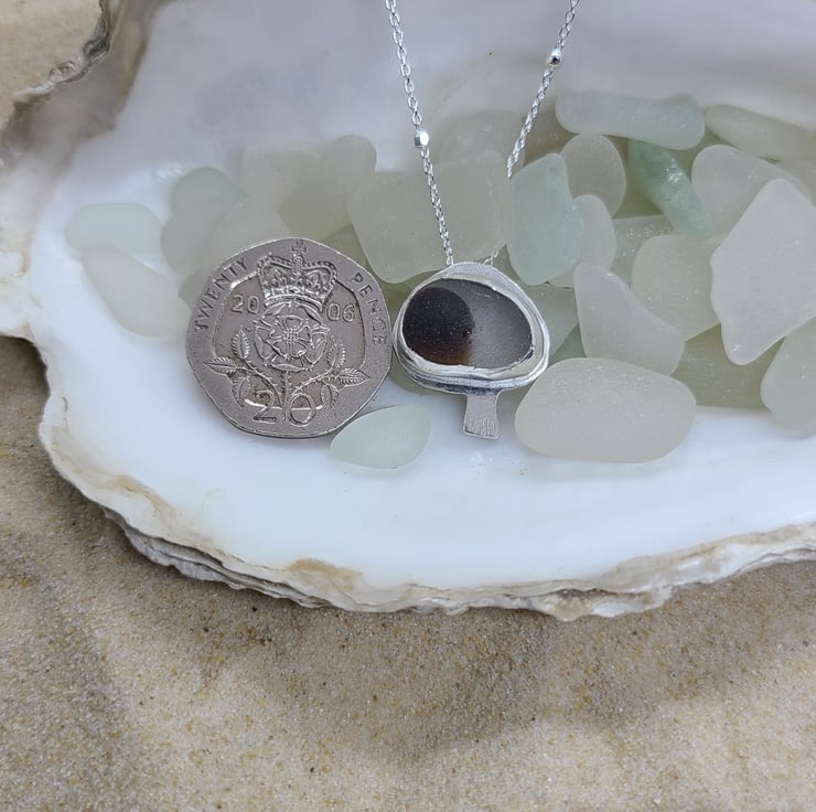 This fun pendant is handmade using recycled fine and sterling silver to encase a beautiful piece of genuine, hand collected, UK sea glass.