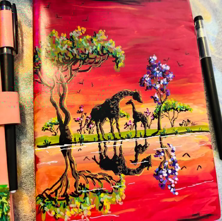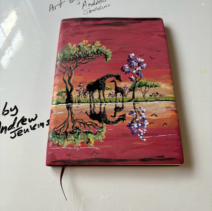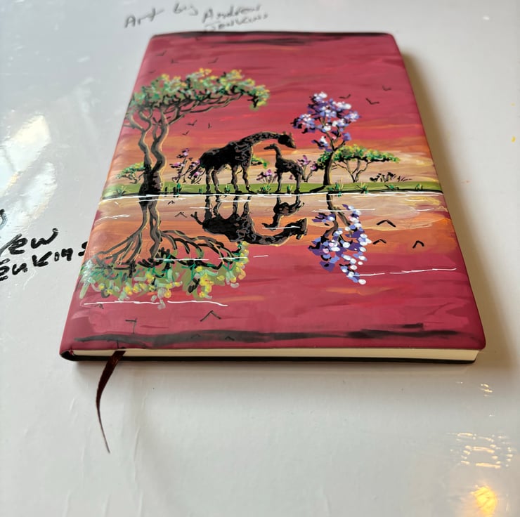 A hand painted and sealed faux leather bound journal by Andrew Jenkins