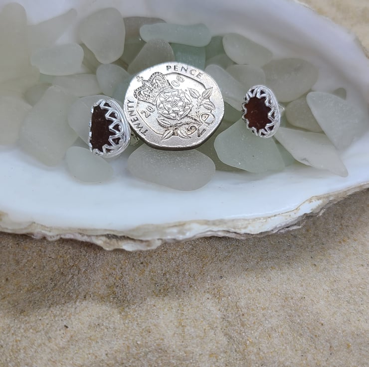 I handmade these earrings using a mixture of fine and sterling recycled silver. The gorgeous amber sea glass was hand collected by me from along the Kent coast.