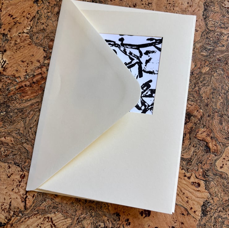 Made from A6 recycled cream 300 gsm card with a square picture window 6cm x 6cm. Each image is singular, printed on 180 gsm white Bristol Paper using recycled ink and non toxic eco friendly glue.