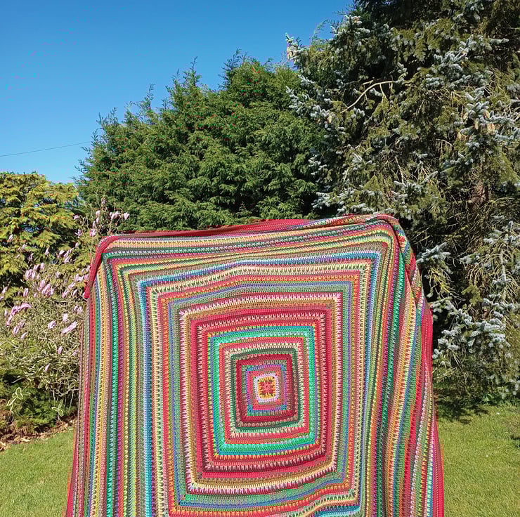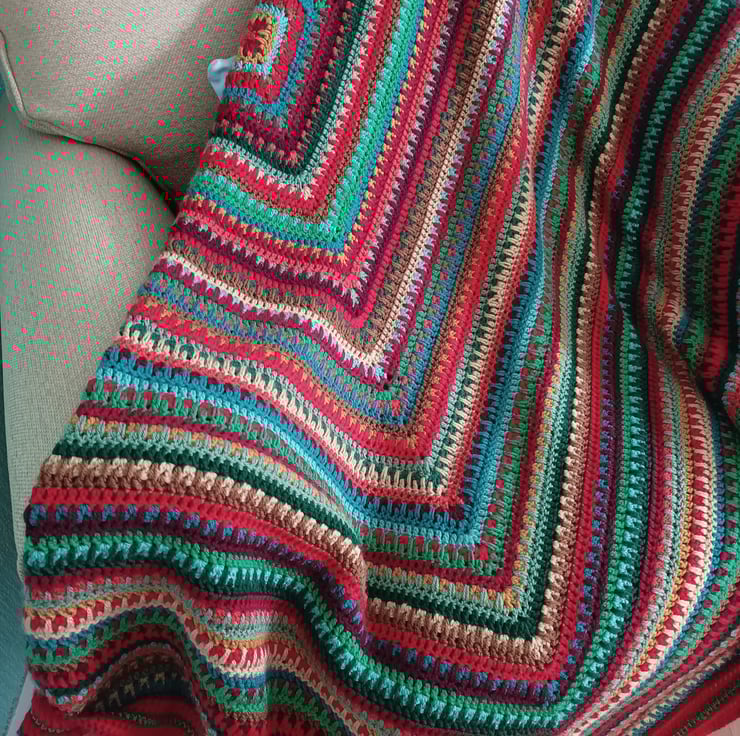 This beautiful large square blanket is made in Christmas inspired colours of reds and greens.