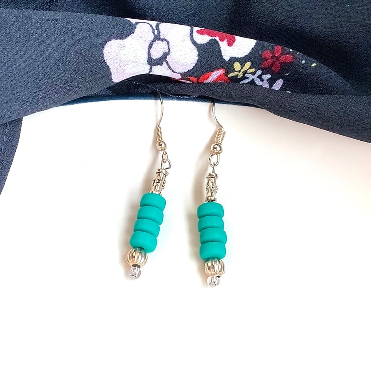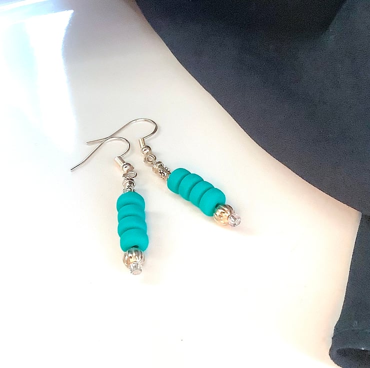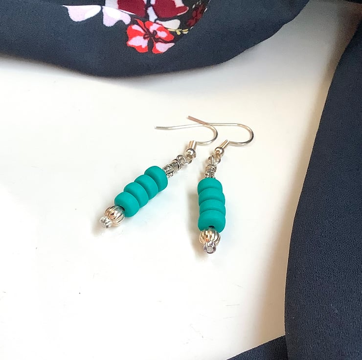 4.9 cm; 4 Turquoise colour beads with Silver effect beads