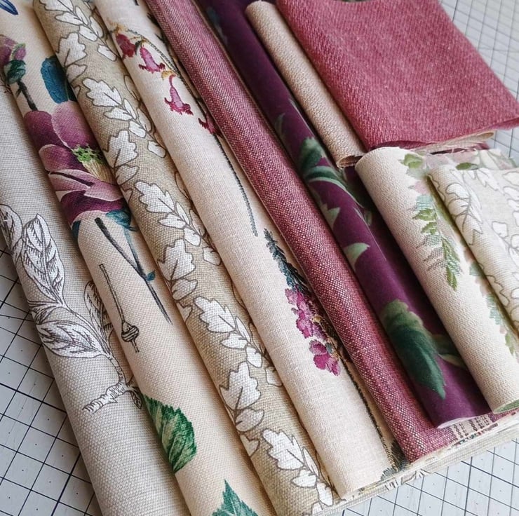 By the designer brand ILIV, these fabrics with plum and raspberry pink tones on a neutral background are stunning.