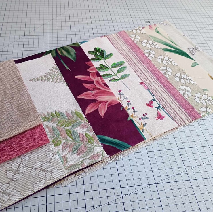 Fabric sample books are such a great source of gorgeous fabrics, and I hate to see them go to landfill when they are no longer needed. It can be tricky to deconstruct the books as the top section is layered with staples and glue, but it's worth it to see the gorgeous bundles of co-ordinated or themed fabrics at the end.