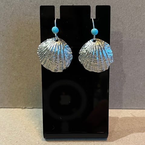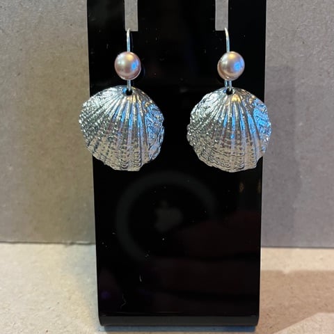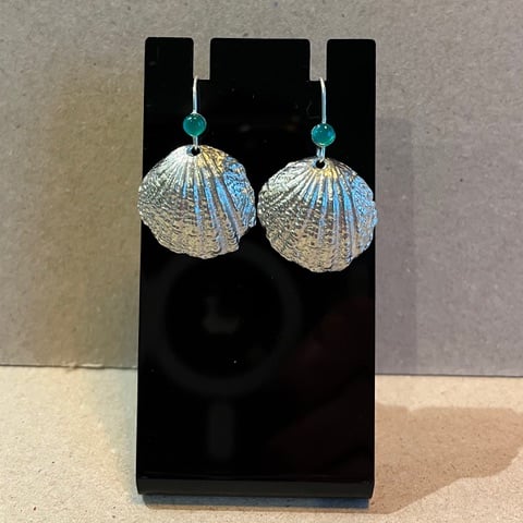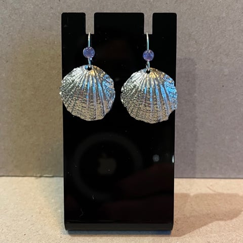 Cast by hand in sand. These pretty pewter shell earrings are enhanced by a choice of real gems. Silver earring findings. Perfect as a birthday present or for a 10th wedding anniversary present.