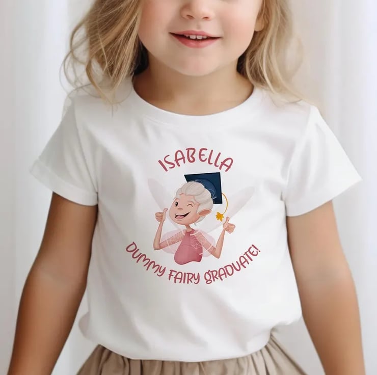Has your little one given up their dummy? Celebrate this big milestone with a Personalised Dummy Fairy Graduate T-Shirt!
