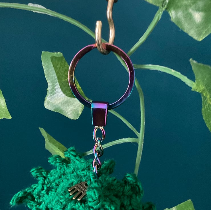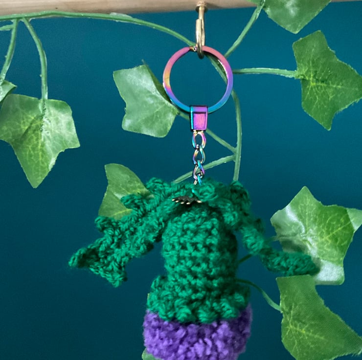 Handmade in Scotland. Crochet keyring with pompon flower.