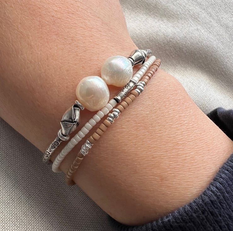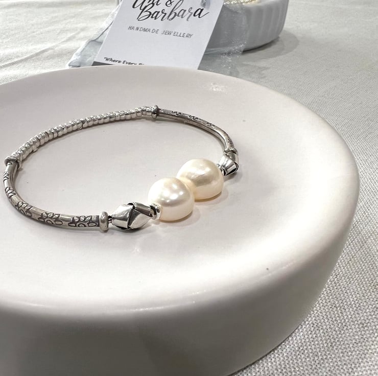 This bracelet was inspired by my admiration for traditional craftsmanship and timeless elegance. The intricate silver detailing, handcrafted by the Karen hill tribes of Thailand, carries a story of ancient artistry passed down through generations. I was particularly drawn to the delicate texture of Karen silver, which perfectly complements the softness of freshwater pearls.