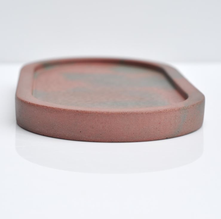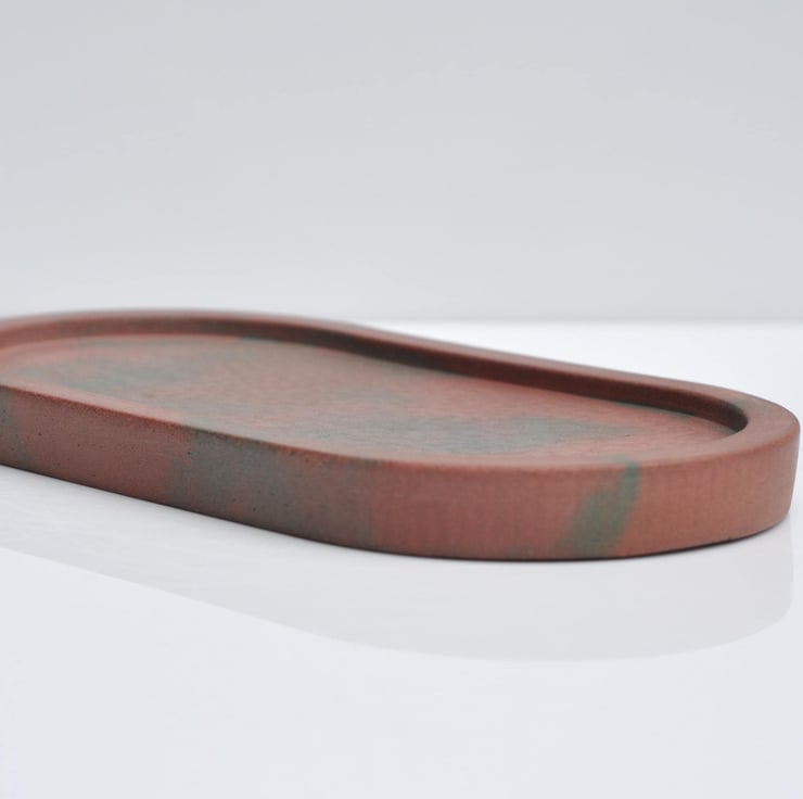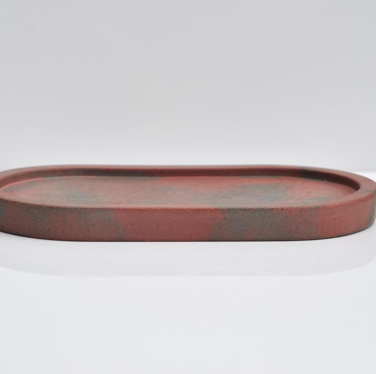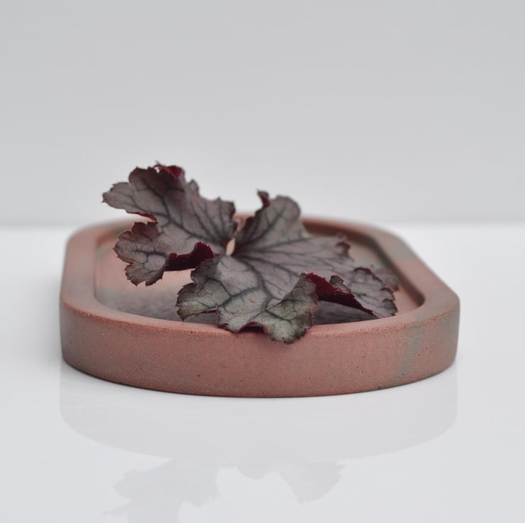 Concrete Tray Handmade Minimalist Decor Green with Pink Accents Oval Trinket Dish Jewellery Holder Modern Home Gift