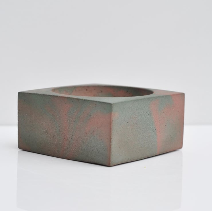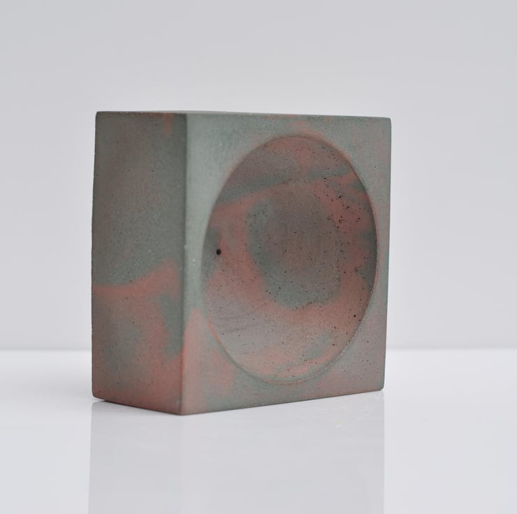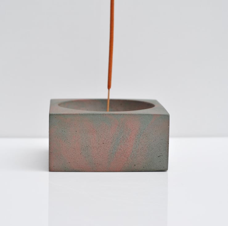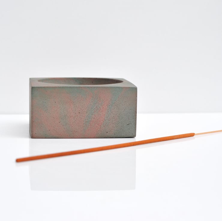 Concrete Incense Burner Handmade Brutalist Decor Green & Orange Minimalist Holder Modern Mantelpiece Accessory Unique Gift