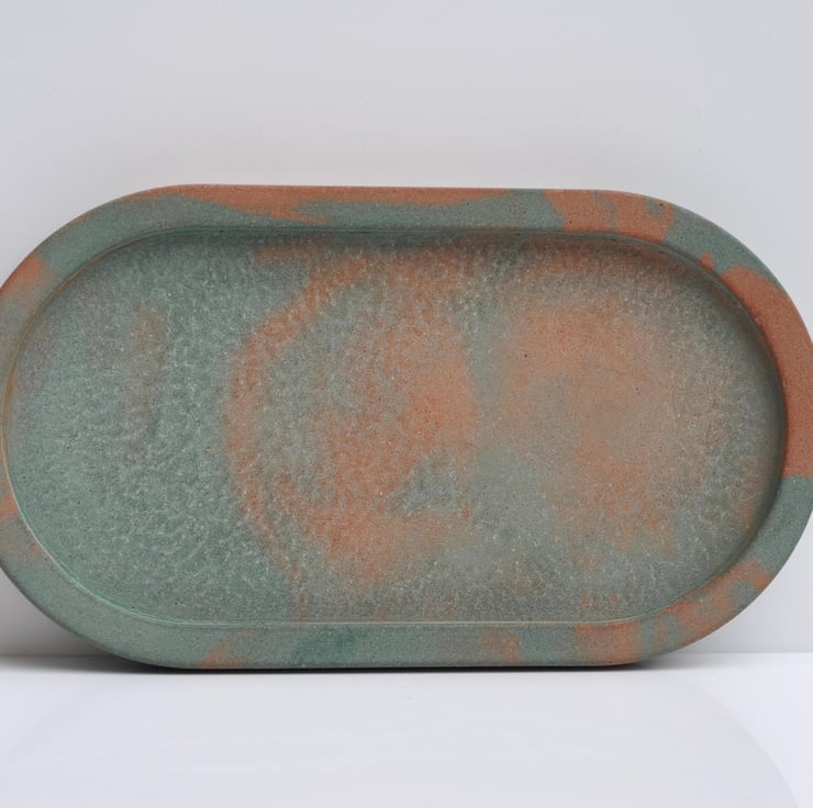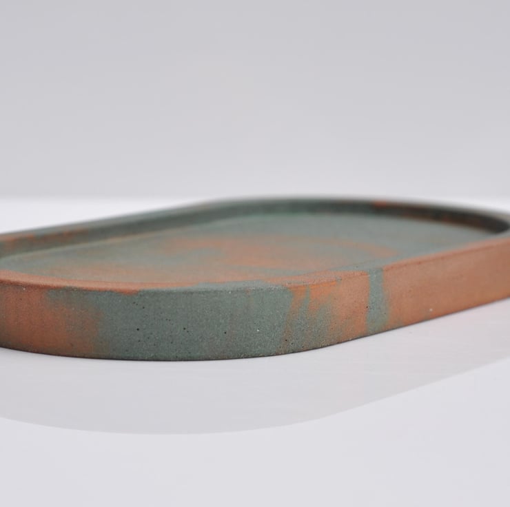 Concrete Tray Handmade Minimalist Decor Green with Orange Accents Oval Trinket Dish Jewellery Holder Modern Home Gift