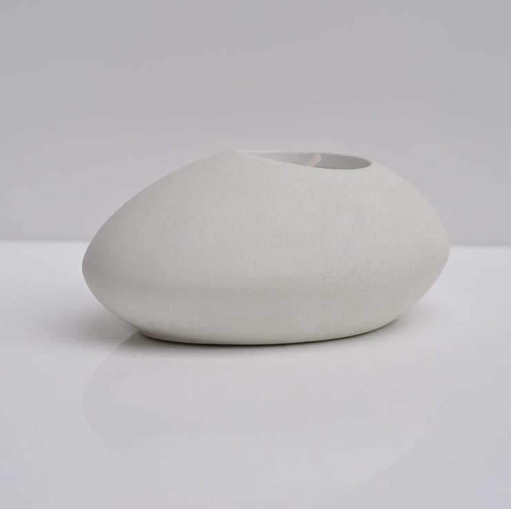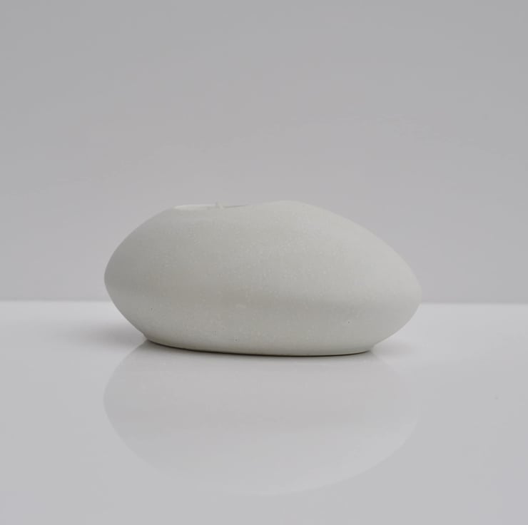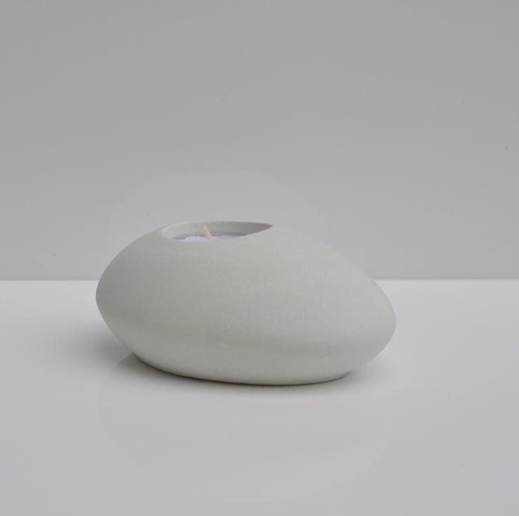 White organic Hand-poured Tealight Holder sculpted from concrete.