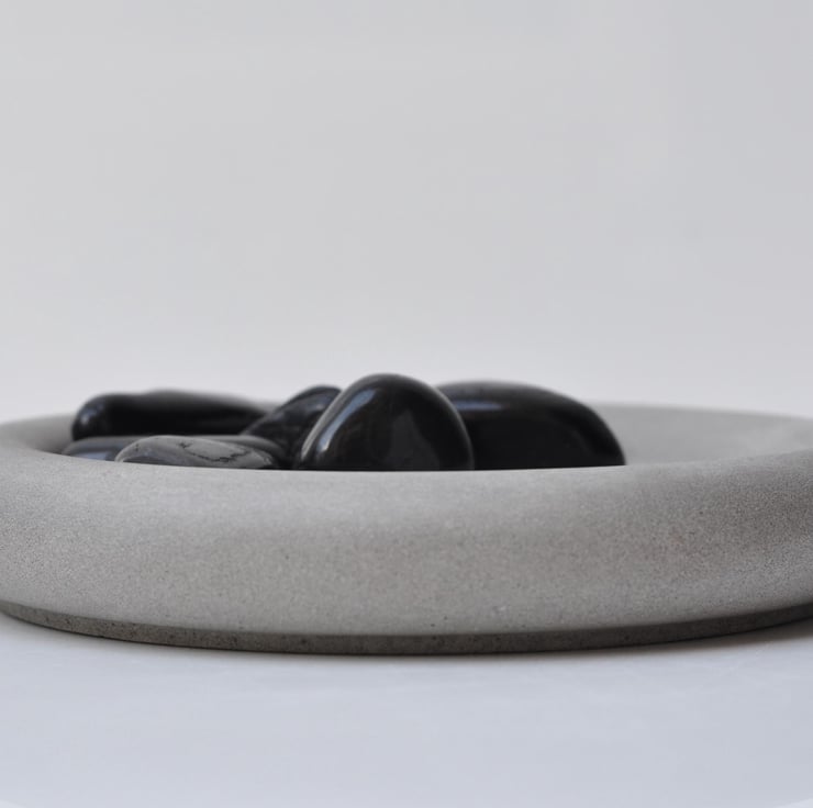 Hand-poured concrete shallow plate with a sleek, industrial-inspired design. Perfect as a decorative bowl, key tray, or modern centerpiece.